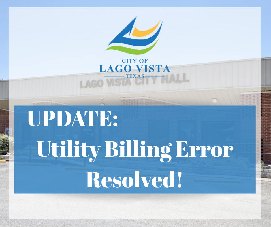 We appreciate your patience as we worked to resolve this issue. If you have any questions or need assistance, please contact the Utility Billing Department.